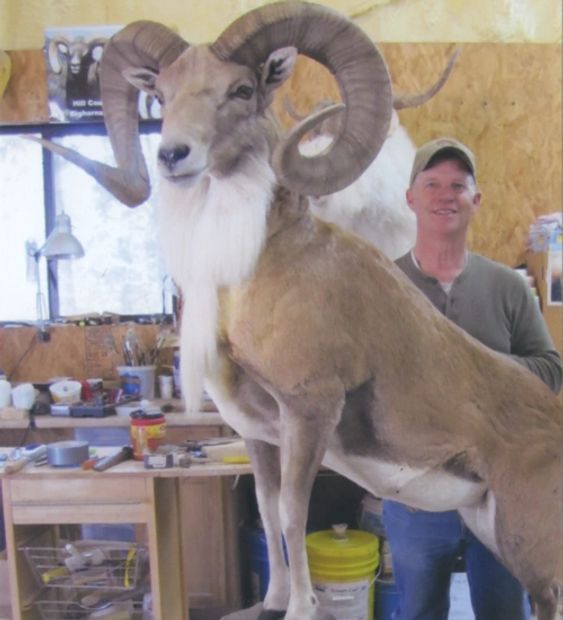 This sheep can be identified by a white mane on top and a black mane on the bottom as found on the ram above. The horn size on U.S.A. specimens equals the Transcaspian's and are equally desirable.
